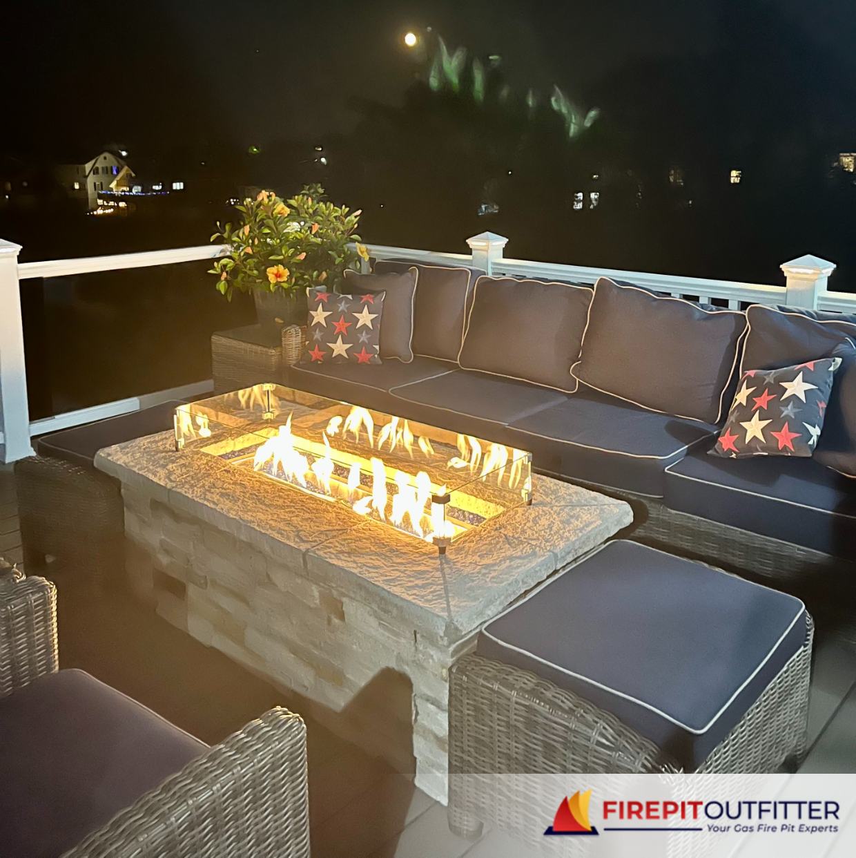 The stone look and choices were excellent!! I thought about getting a gas fire pit with electric ignition, but the FirePit Outfitter products look and work great. Now it's on my deck and I have it hooked up with Alexa. I would highly recommend getting a rectangle custom stone fire pit.