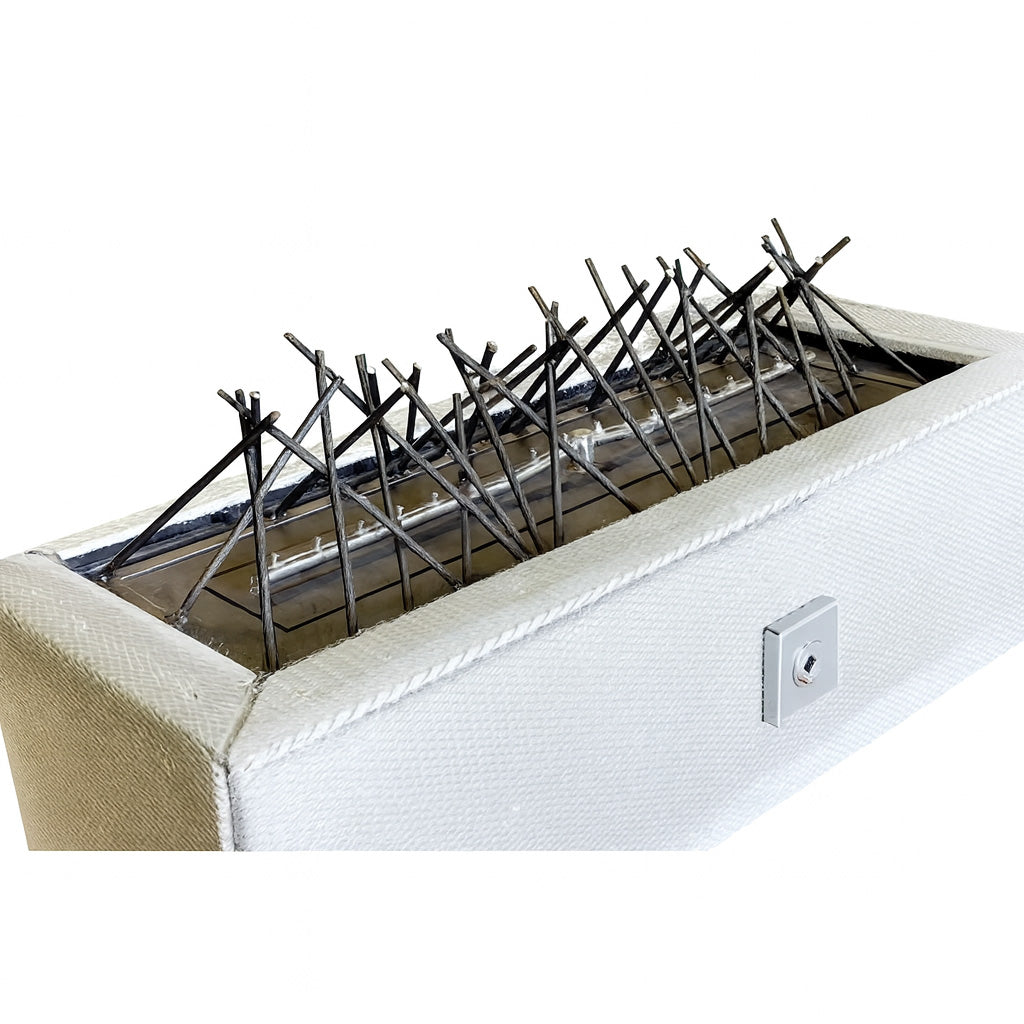 Our exclusive gas fire pit Fire Twig Sculpture is handmade with varying sizes and diameters of round steel rods with beautiful bark details.